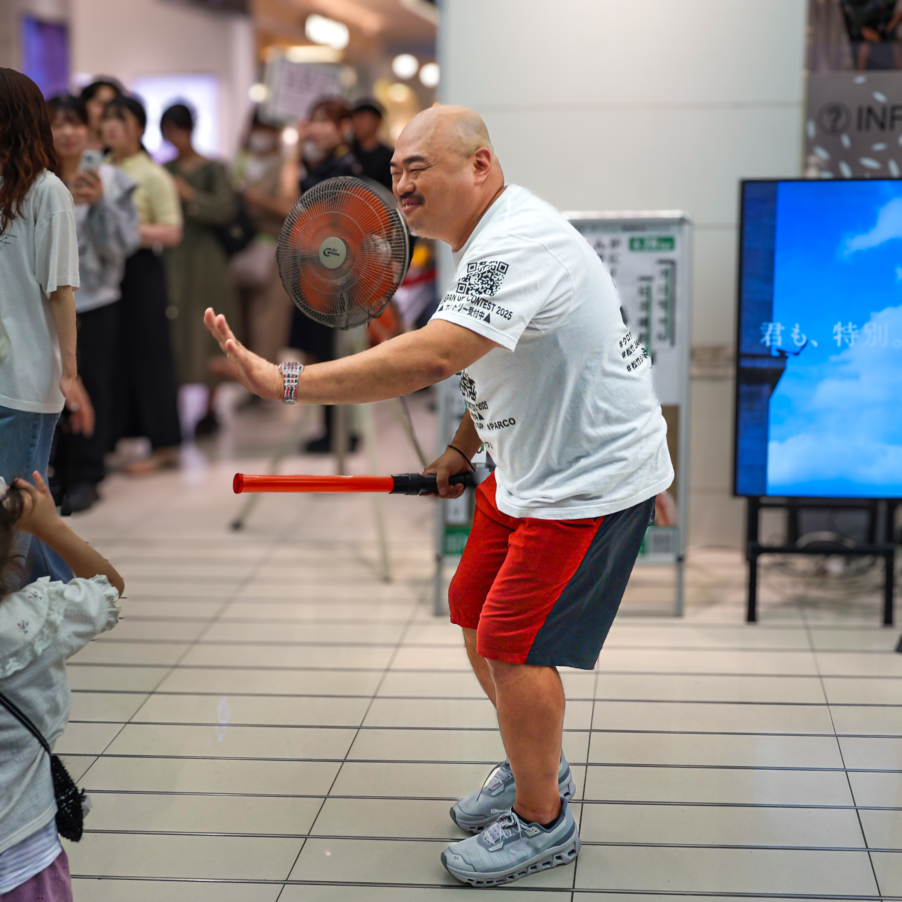 2025年6月28日(土)、福岡県福岡市中央区天神の福岡パルコにて、タレントのクロちゃんが「松竹 JAPAN GP CONTEST 2025」をアピールするイベントが開催されました。
