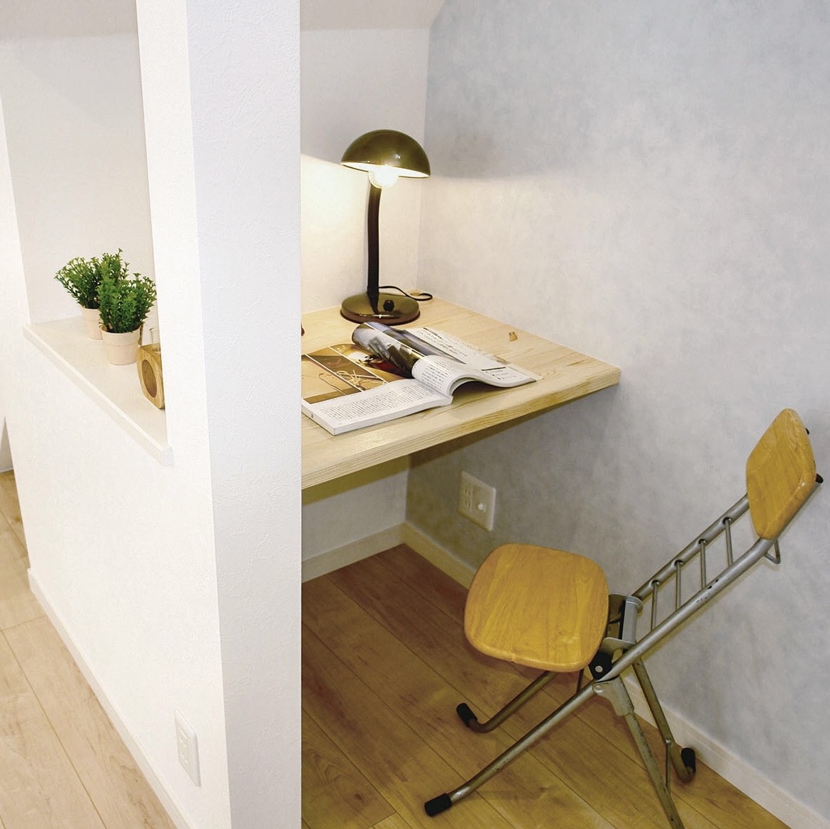 城南区南片江の物件では、階段下のデッドスペースにスタディコーナーを設置しました。