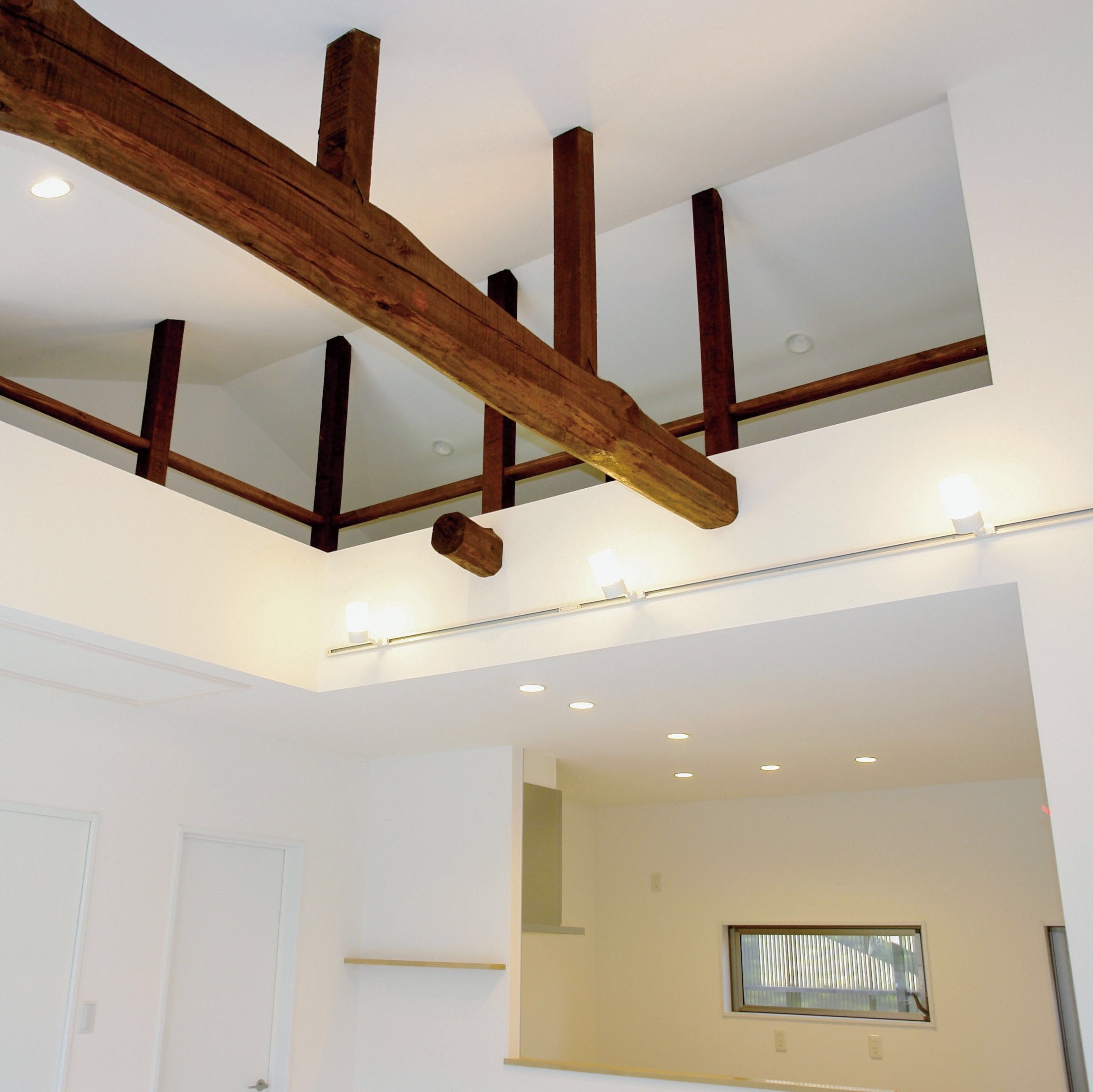 ▼立派な梁を見せ、ロフトを増設したリビング