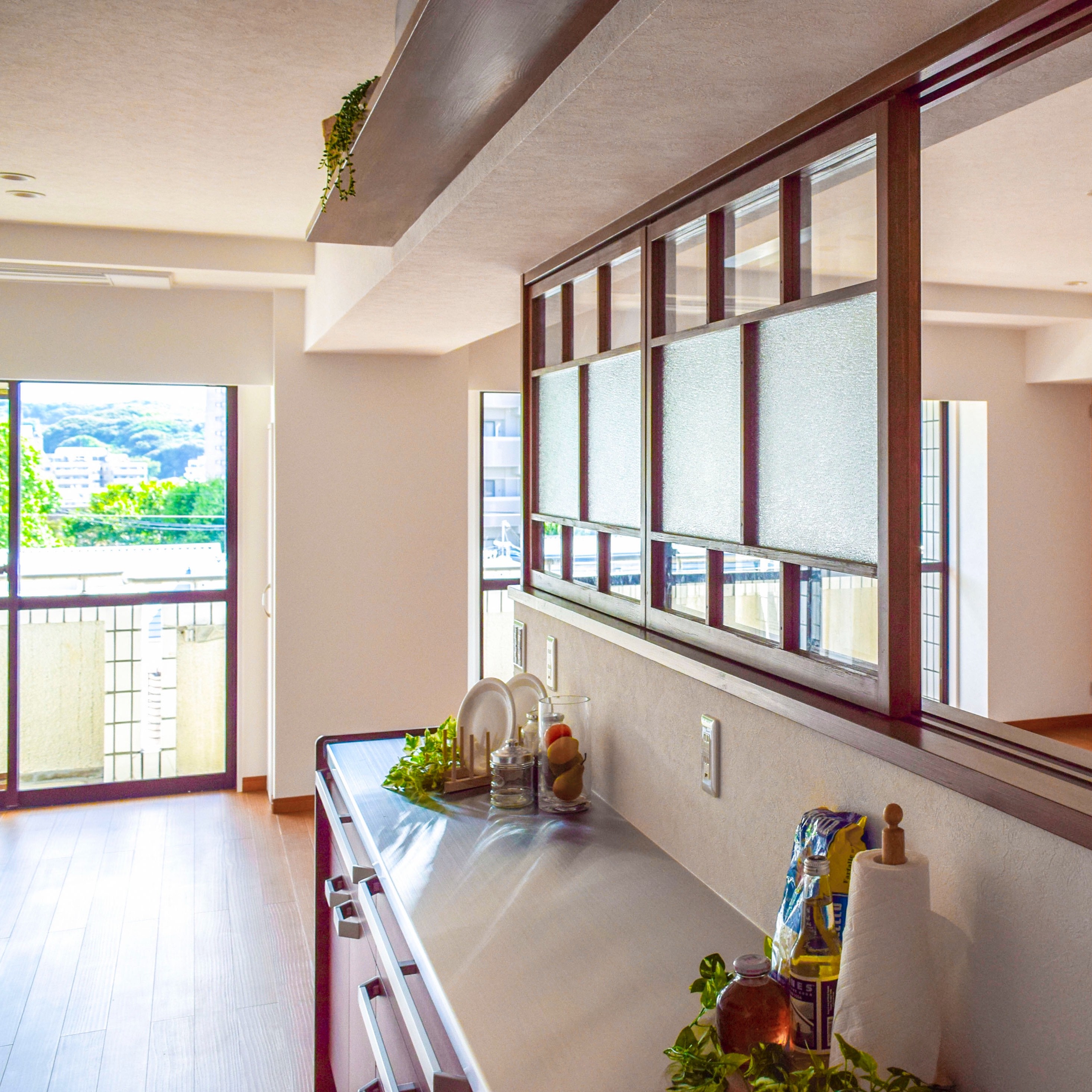 平尾のマンションの物件では、外の景色が見える、広々としたキッチンにリノベーションしました。