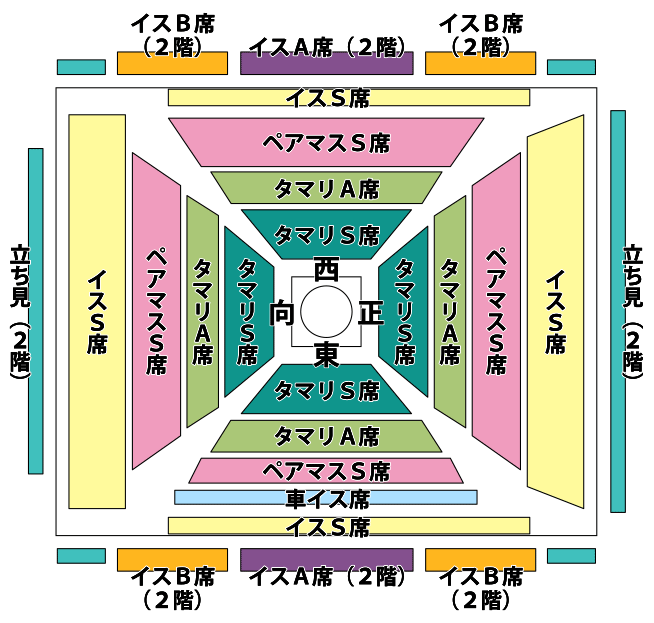 ※タマリ席・ペアマス席は、床に着席するお席です。座布団はつきませんので、ご持参いただくか場内でお買い求めください。
