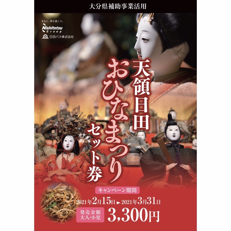 2021年2月15日(月)〜3月31日(水)の期間、日田市観光協会と日田バスより共同で、「天領日田おひなまつりセット券」が販売されます。
