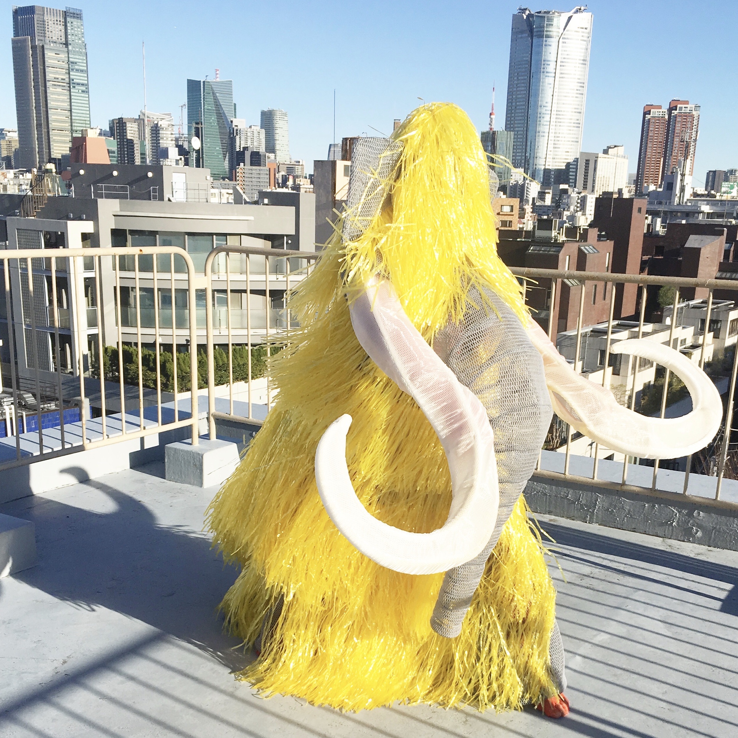 これまでに森山開次氏など国内外問わず多くの振付家や演出家の作品に出演している若手ダンスパフォーマー藤村港平氏のパフォーマンスがひびのこづえ氏の衣装に息を吹き込み、代表作《ベアリング・グロッケン II》などでも話題の川瀬浩介氏による音楽にあわせ、様々な衣装で変身しながらマンモスが踊り出します。