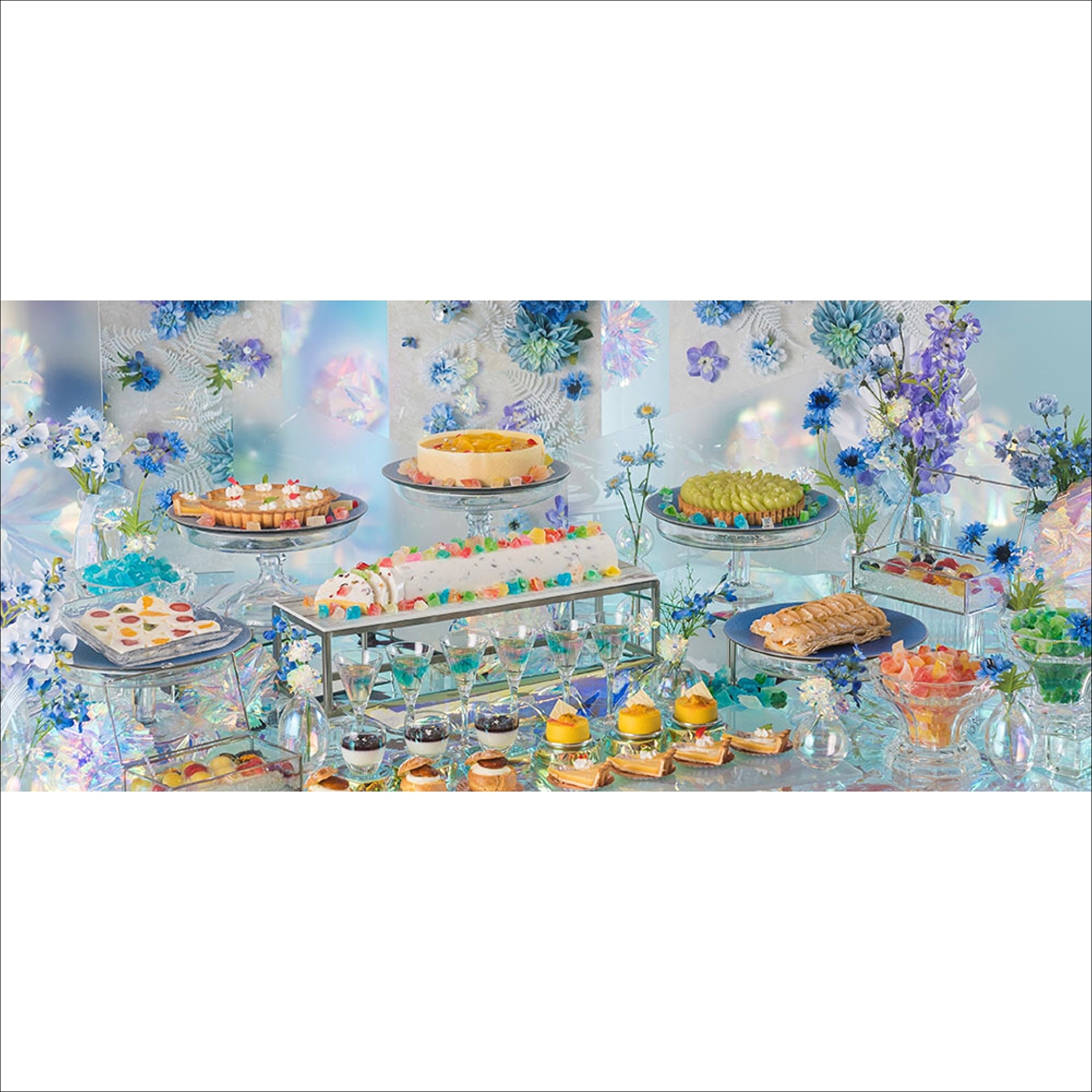 煌めく透明スイーツをテーマに、マスカットやマンゴー、白桃等のフレッシュなサマーフルーツを使用した約20種類のスイーツが楽しめます。