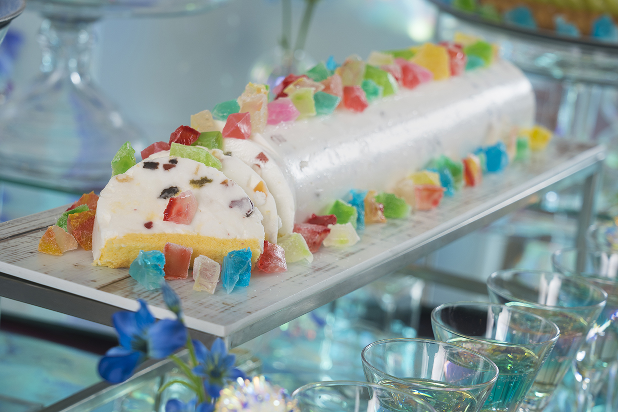 透明ゼリーのレモンタルト、ユニコーンカクテル、ホテルメイド琥珀糖 など。