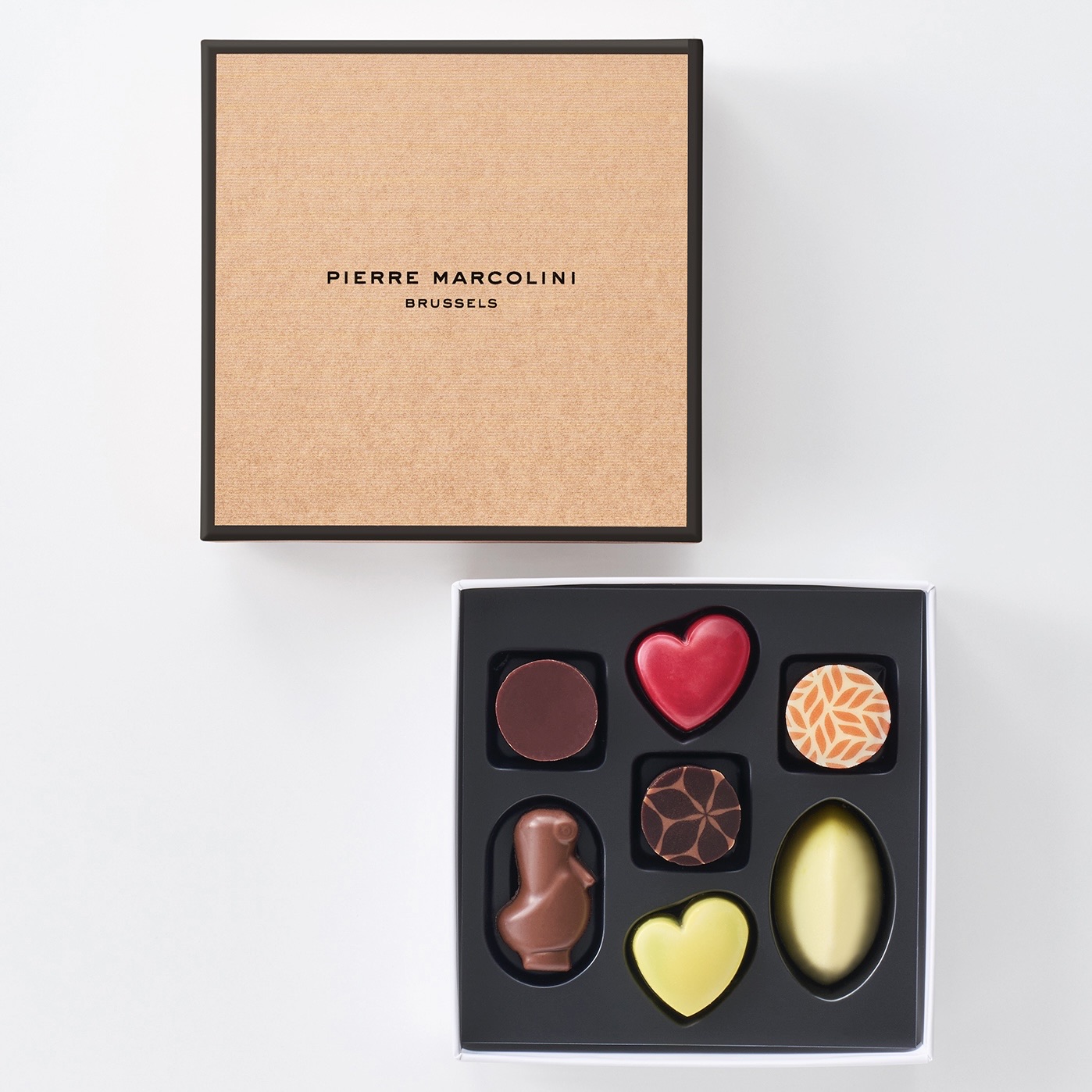 ピエール マルコリーニこだわりのチョコレートと、オリジナルクーベルチュールを使用した焼き菓子を一度に楽しめる贅沢なアソートメントボックス。