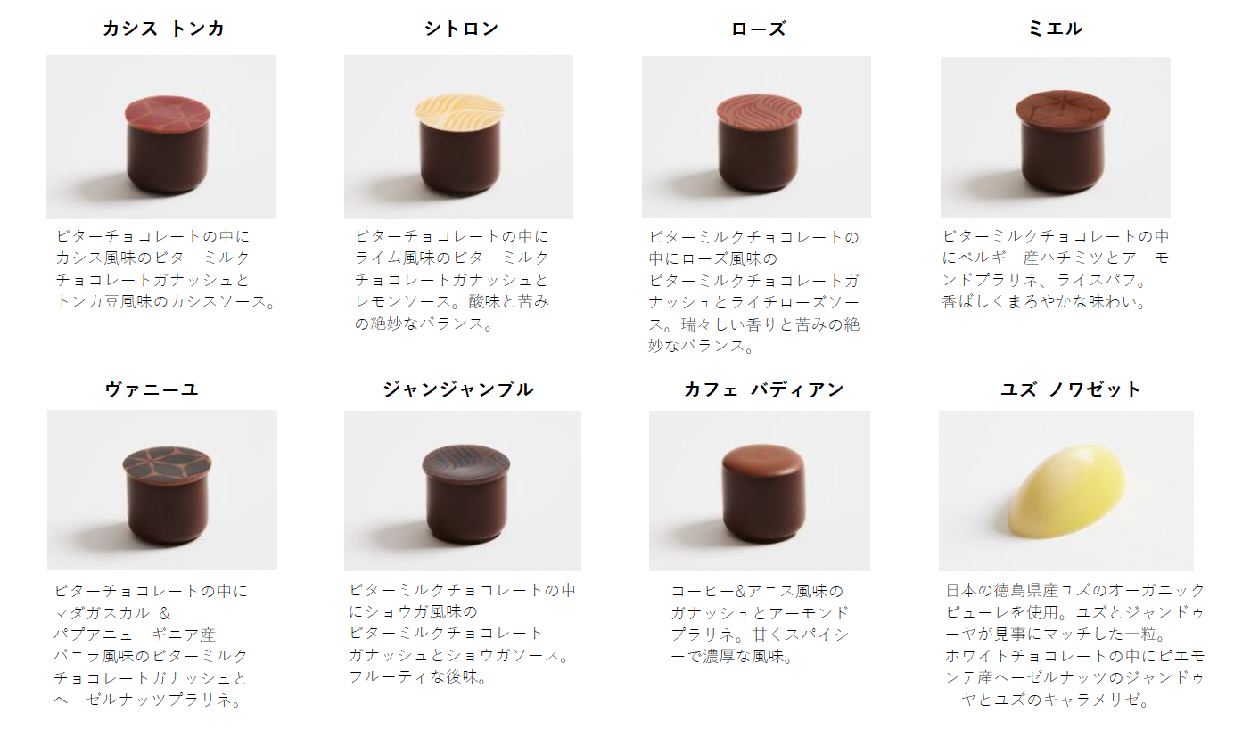 日本の生チョコに着想を得た「ガナッシュ ピュール」や口どけのよいギモーヴとカリっとしたナッツを組み合わせた「ギモーヴ ショコラ」、上質なチョコレートと選りすぐりのジャパニーズウィスキーとのマリアージュが楽しめる「レア ジャパニーズ ウィスキー」などみなさまにお楽しみいただけるラインナップをご用意しています。