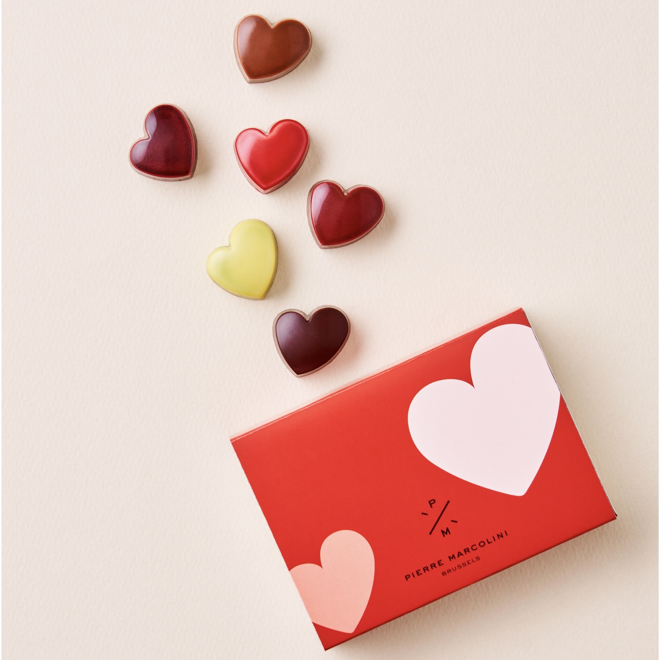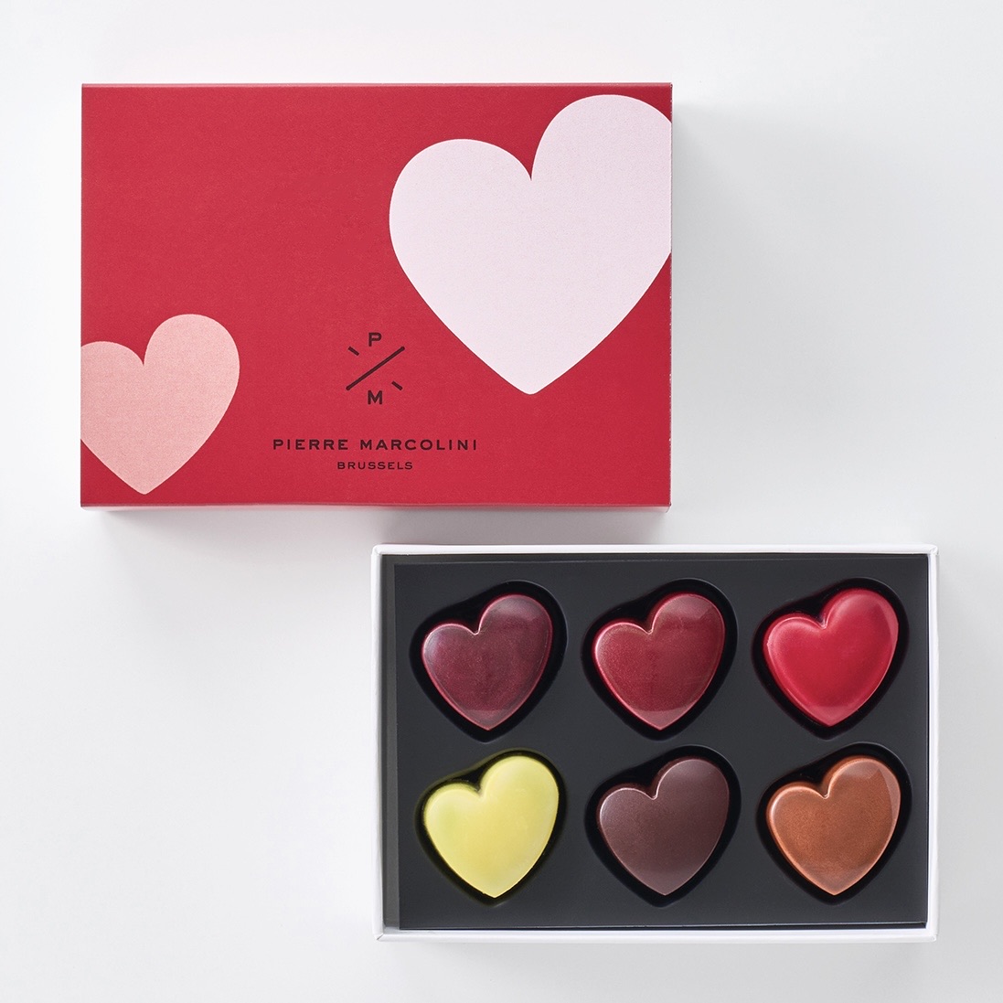ブランドのアイコンであるクール シリーズを、30周年を記念してリニューアルした「クール ココロ シリーズ」。ピスタチオやサマートリュフ、ユズ、アプリコットなどの厳選素材を使用したバレンタイン限定フレーバー5種と人気のフランボワーズを詰め合わせました。アシンメトリーハートが華やかなハート尽くしのアソートメントです。