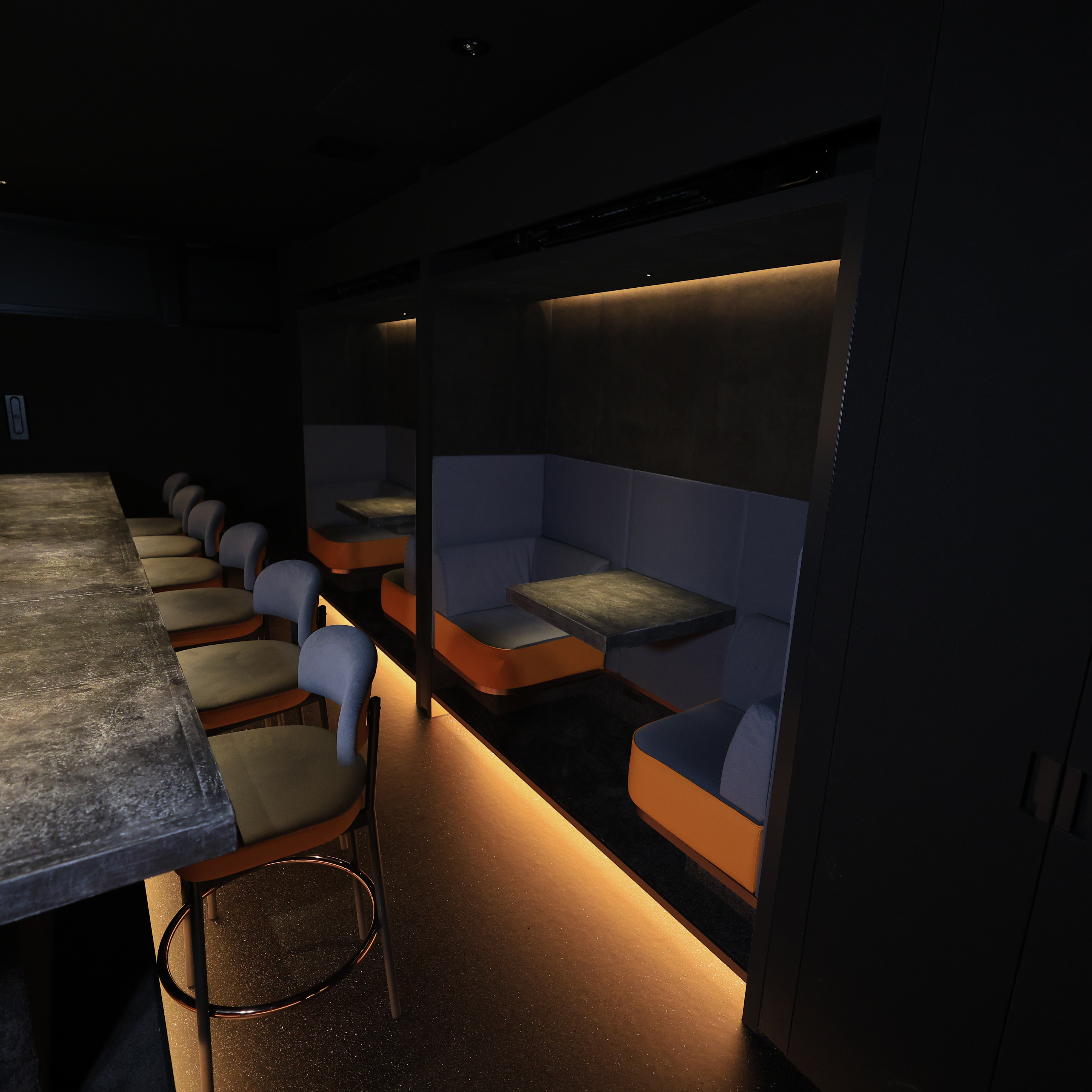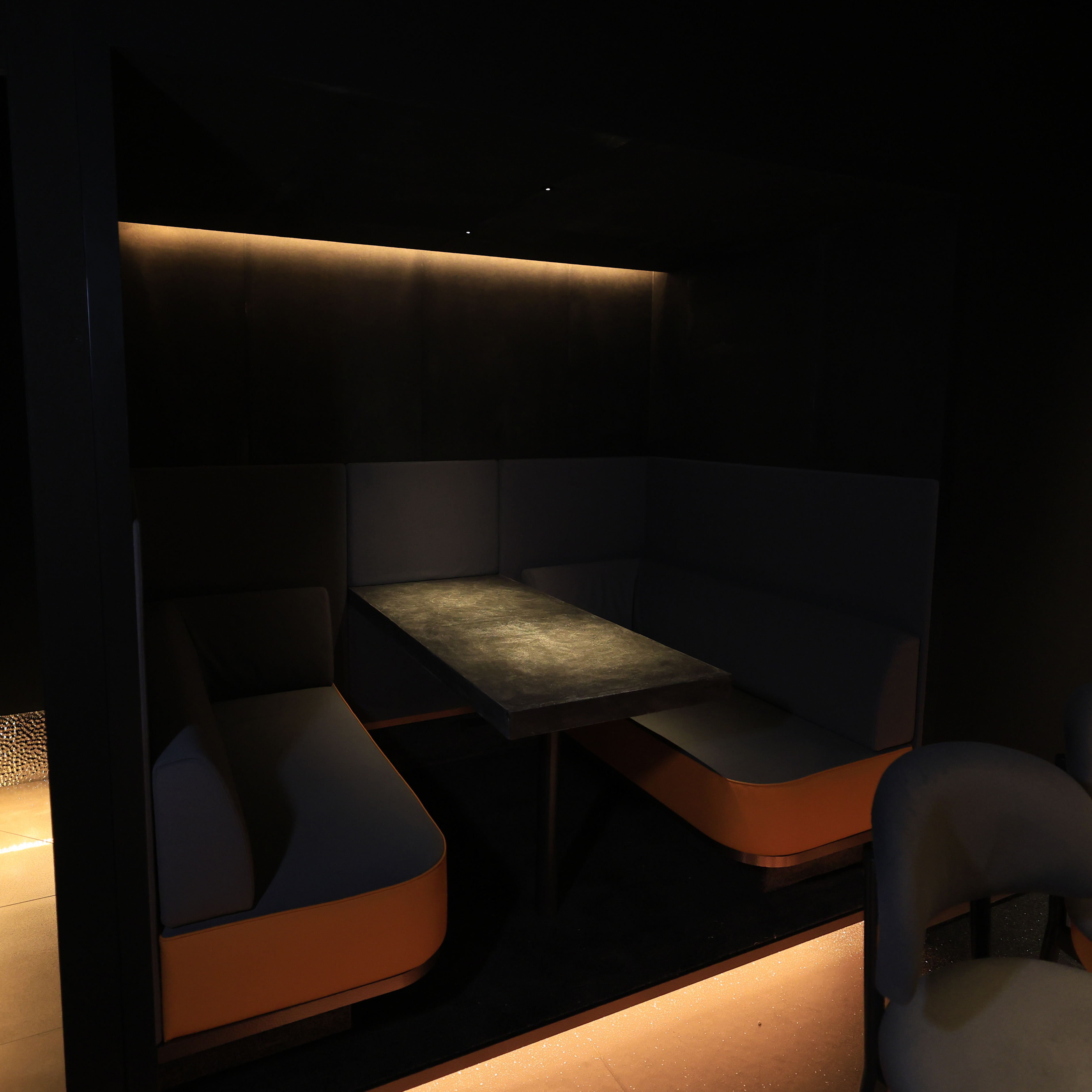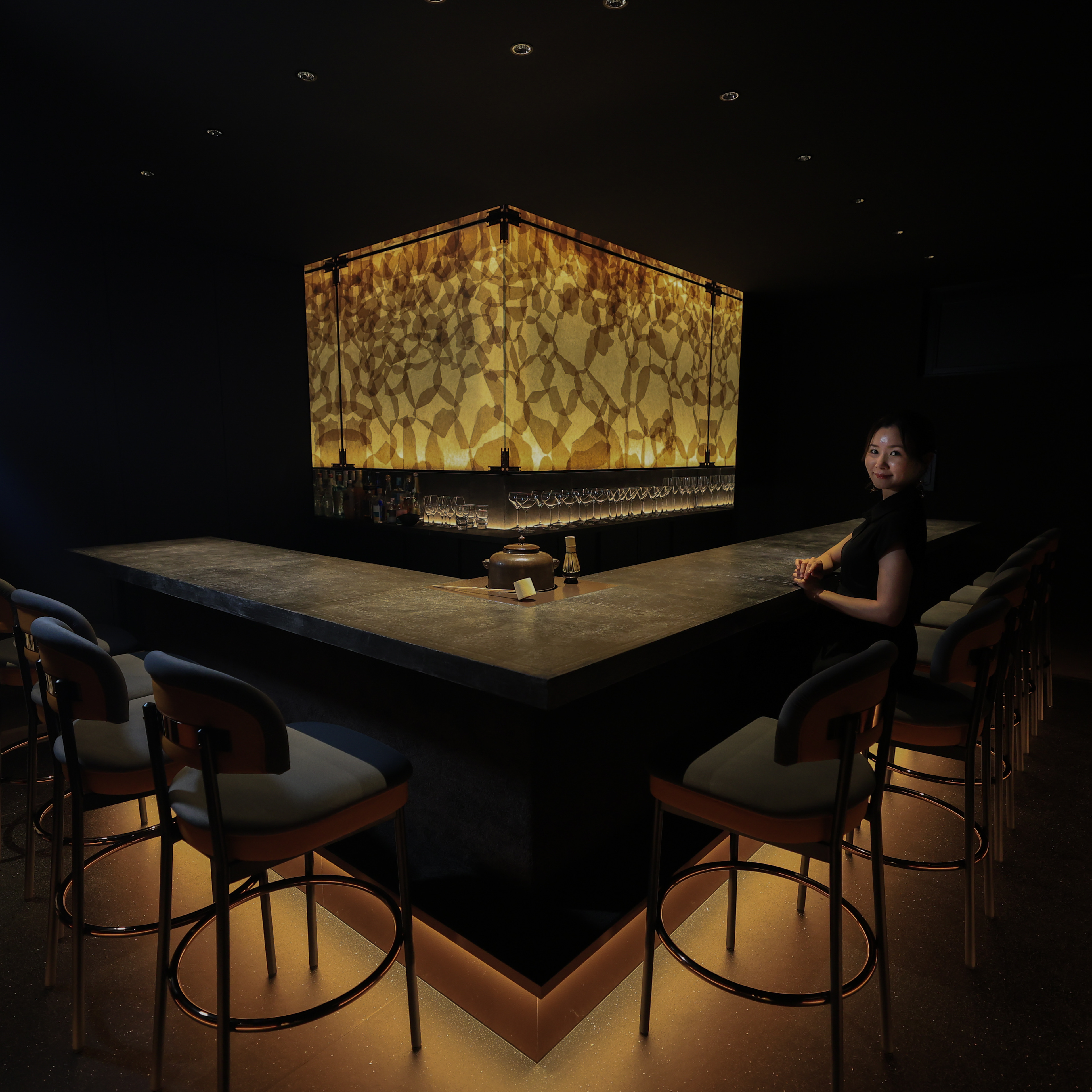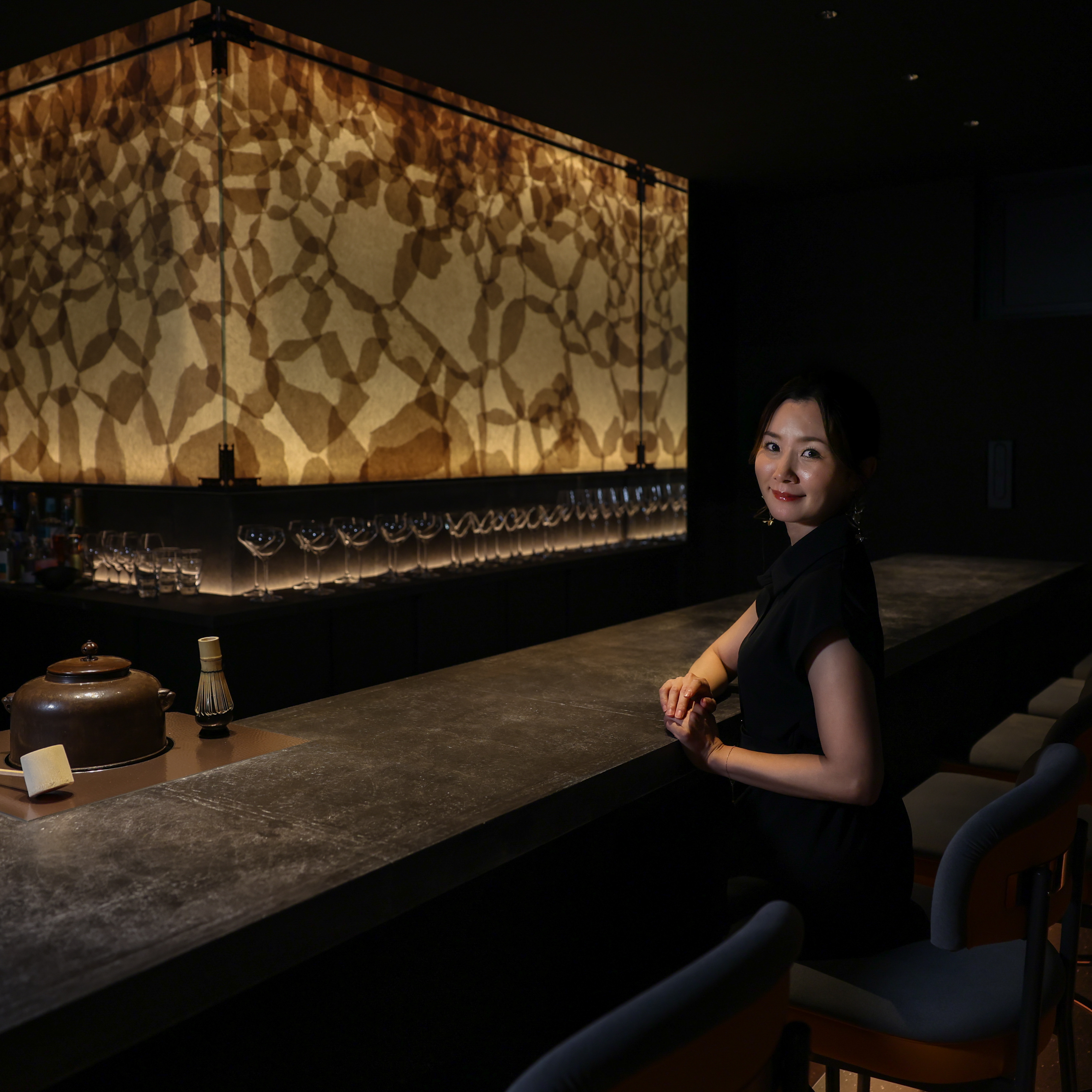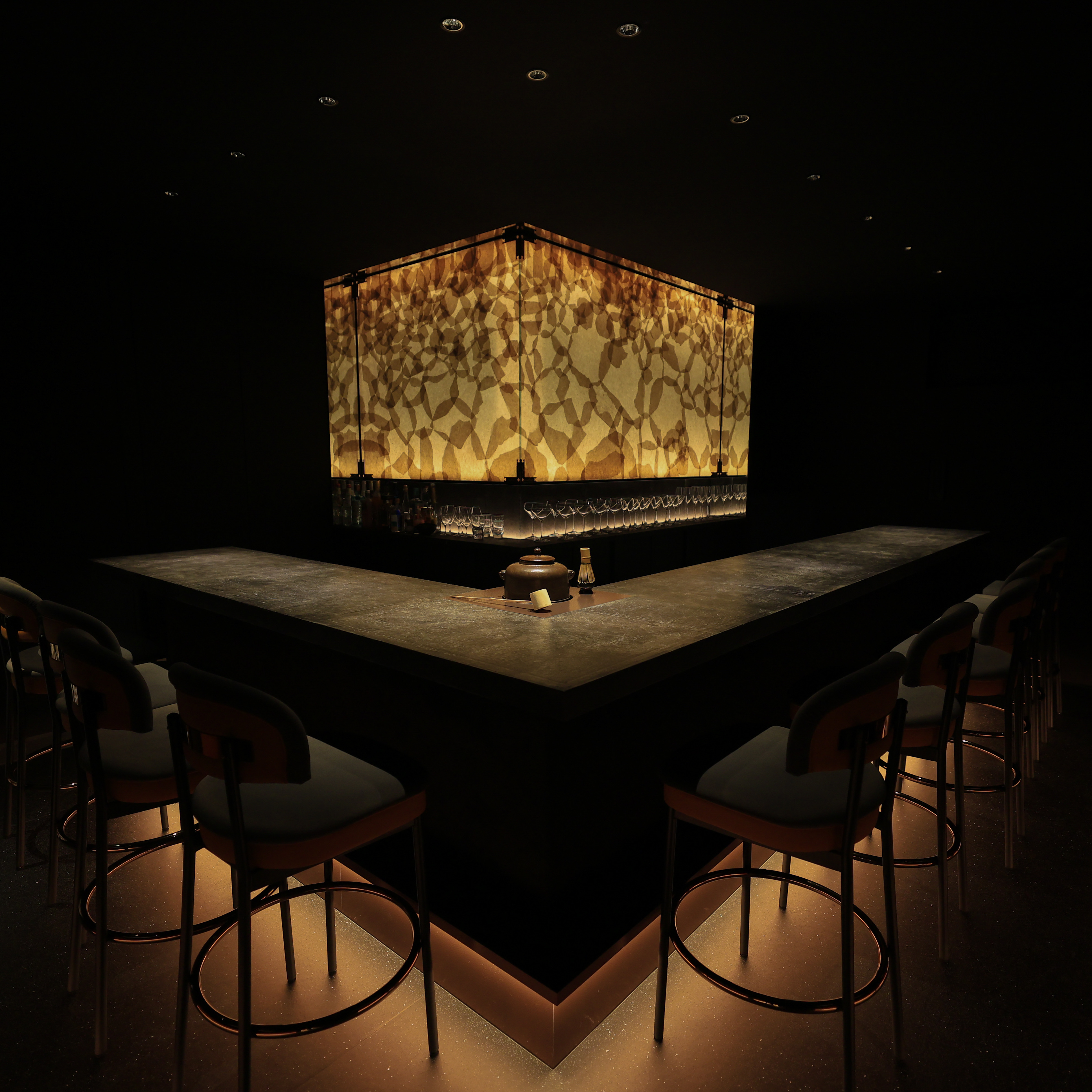 茶室に受け継がれる美しい所作と空間の精神を現代のバーカウンターに映した、Remake easy流の茶室空間。
