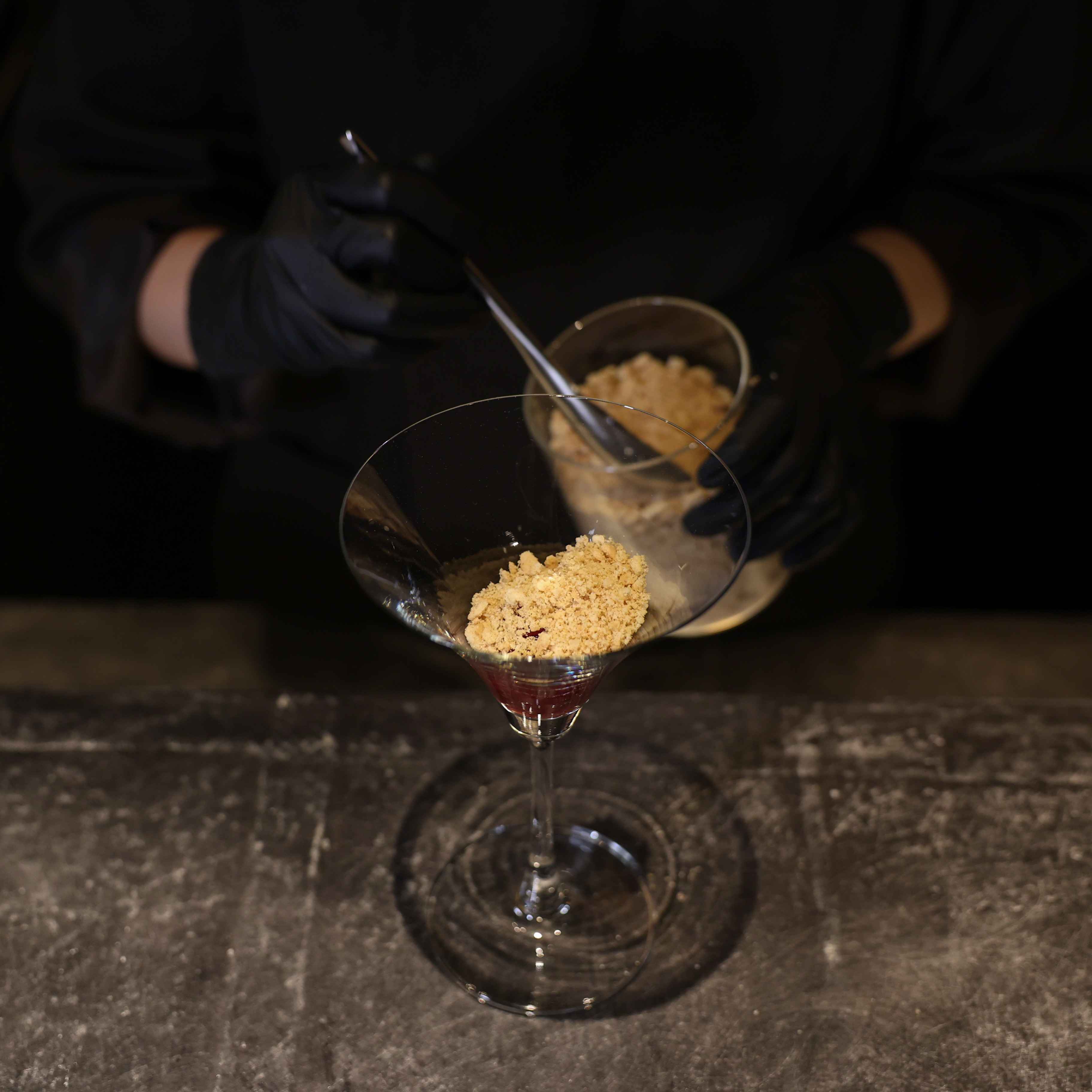 アマレットの持つ甘い芳香と北海道ニセコ町で作られるこだわりの発酵ジンジャーの後味がすっきりとしたカクテル。いちごやアーモンドの香りとペアリングを是非ご一緒にお楽しみください。