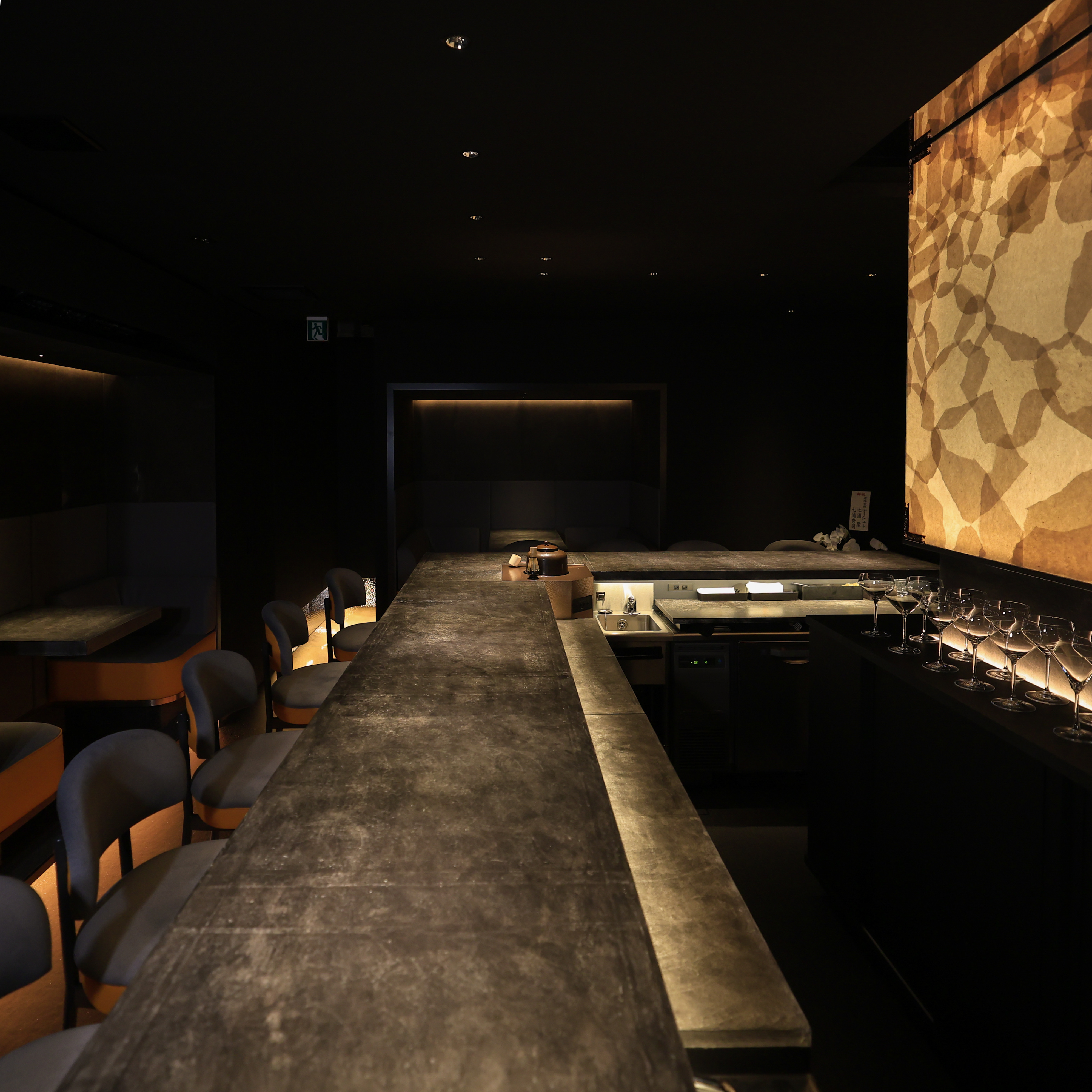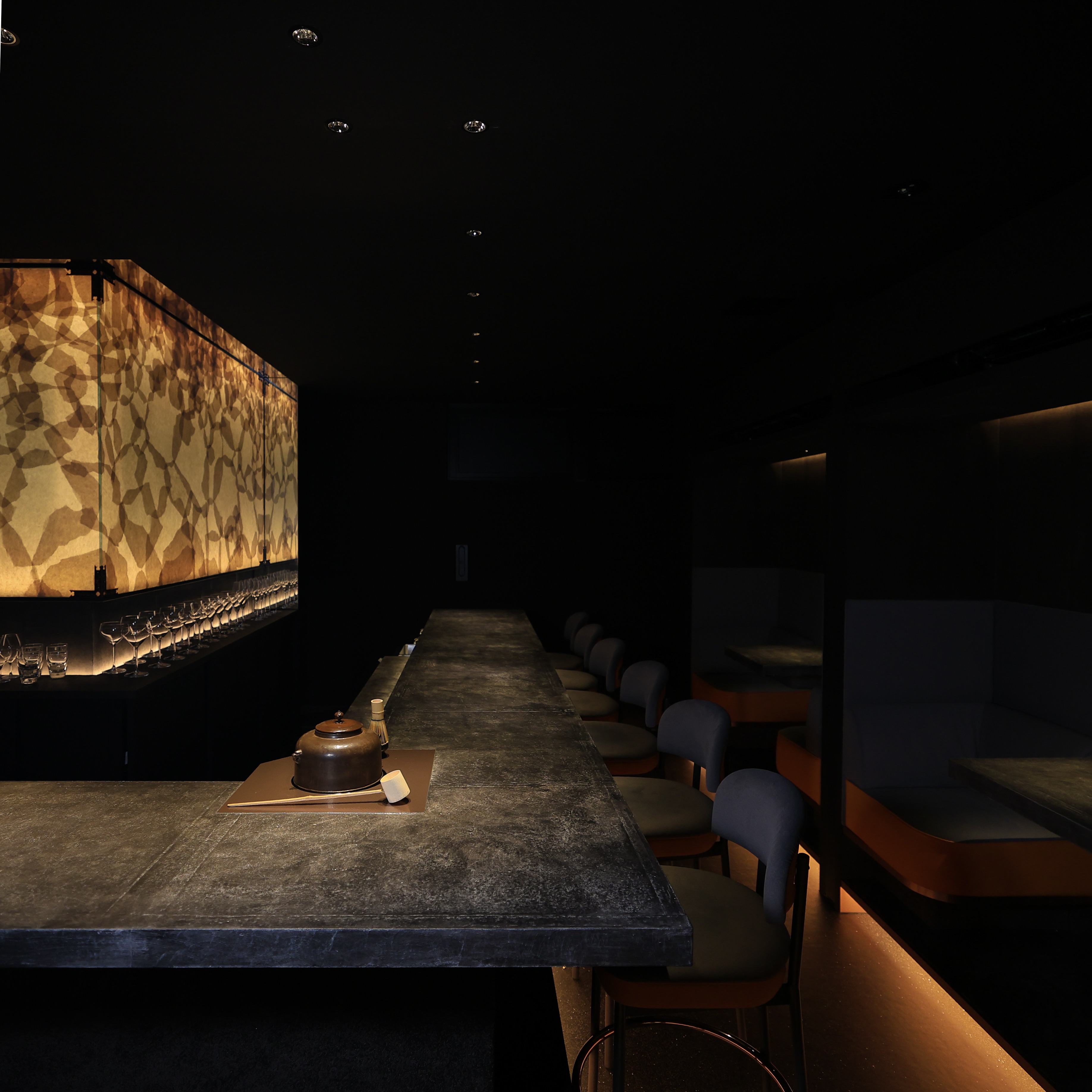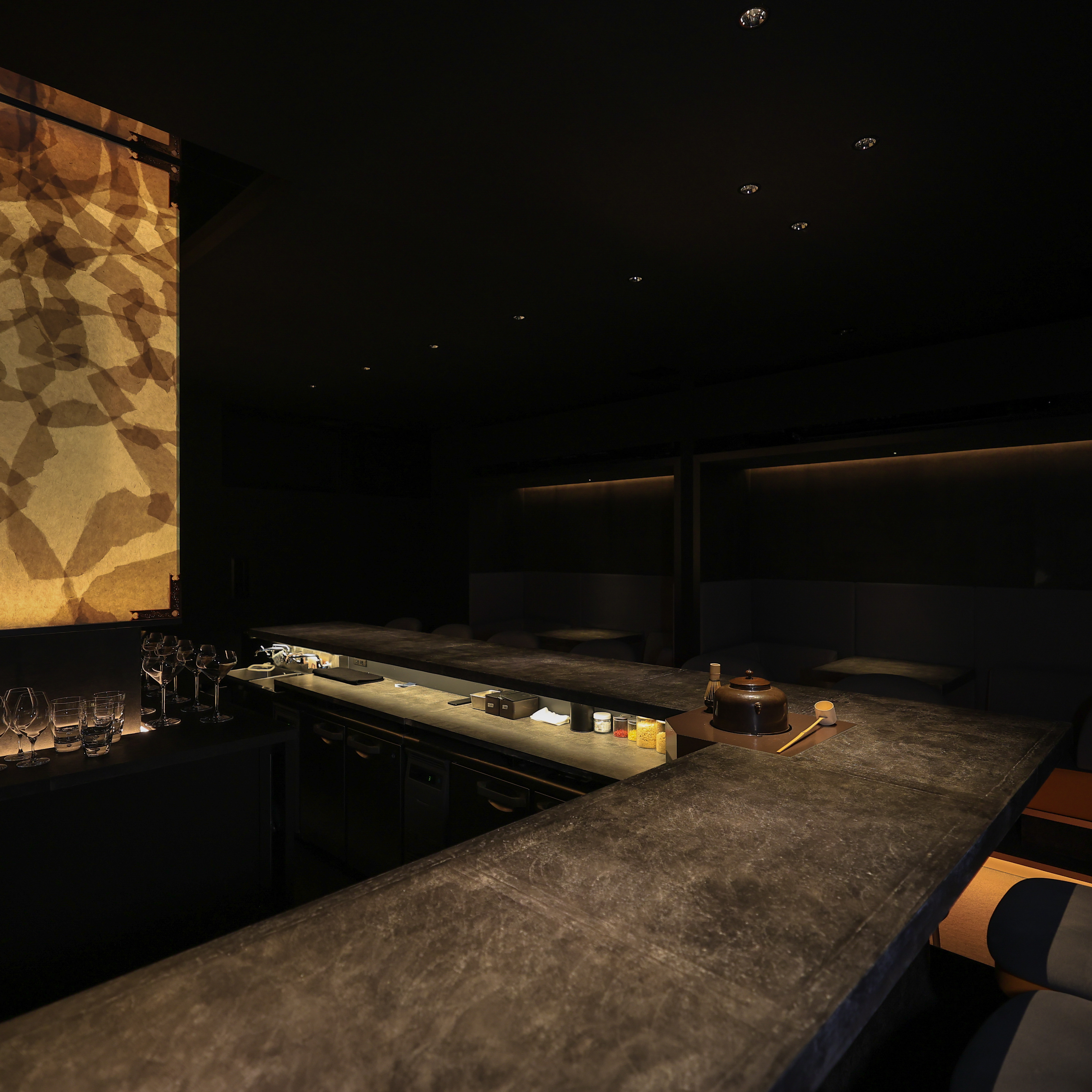 Remake easy博多天神は、茶室に受け継がれる美しい所作と空間の精神を、現代のバーカウンターに映したRemake easy流の茶室空間です。
