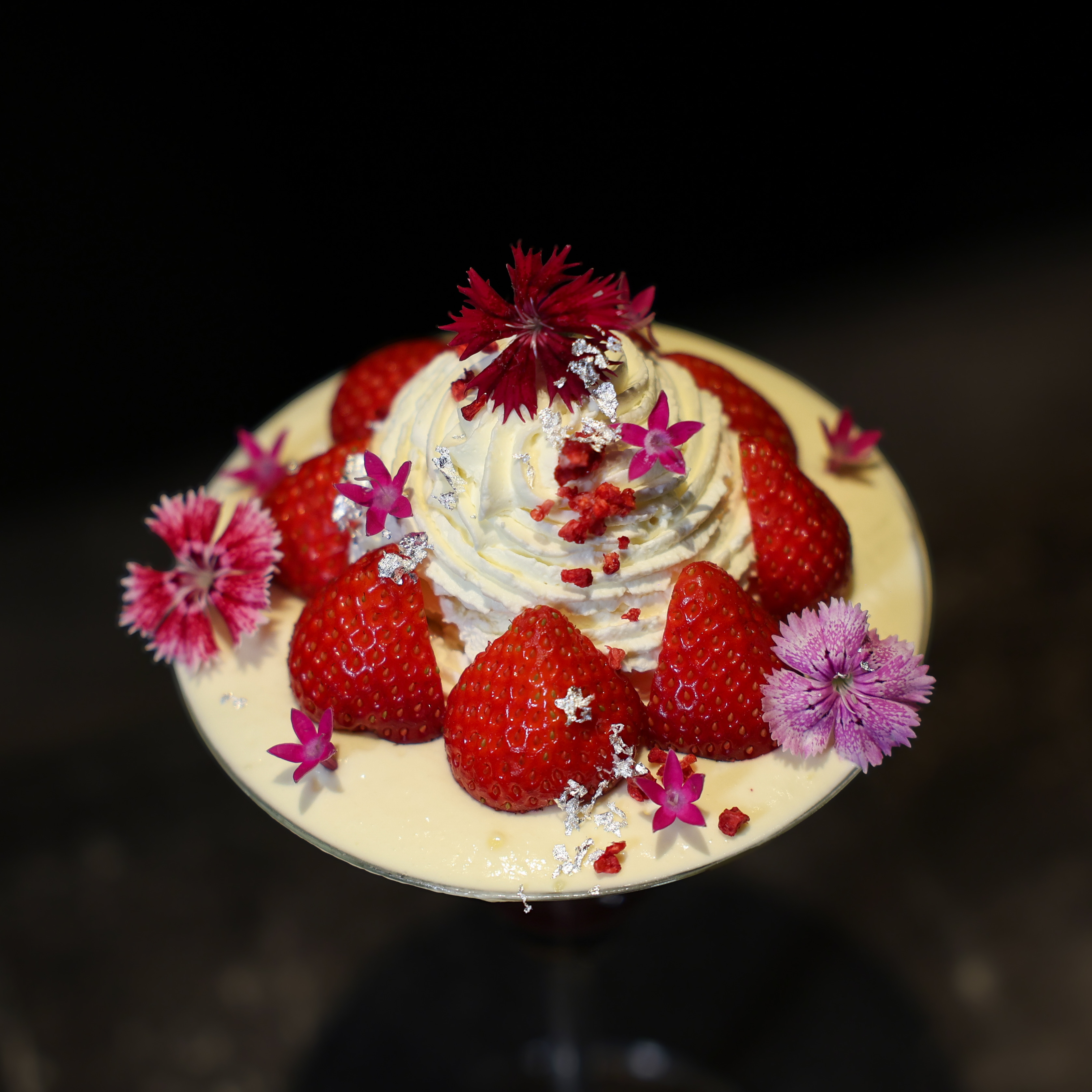 シグネチャーパフェ「イチゴの花畑パフェ」を作っていただきました。