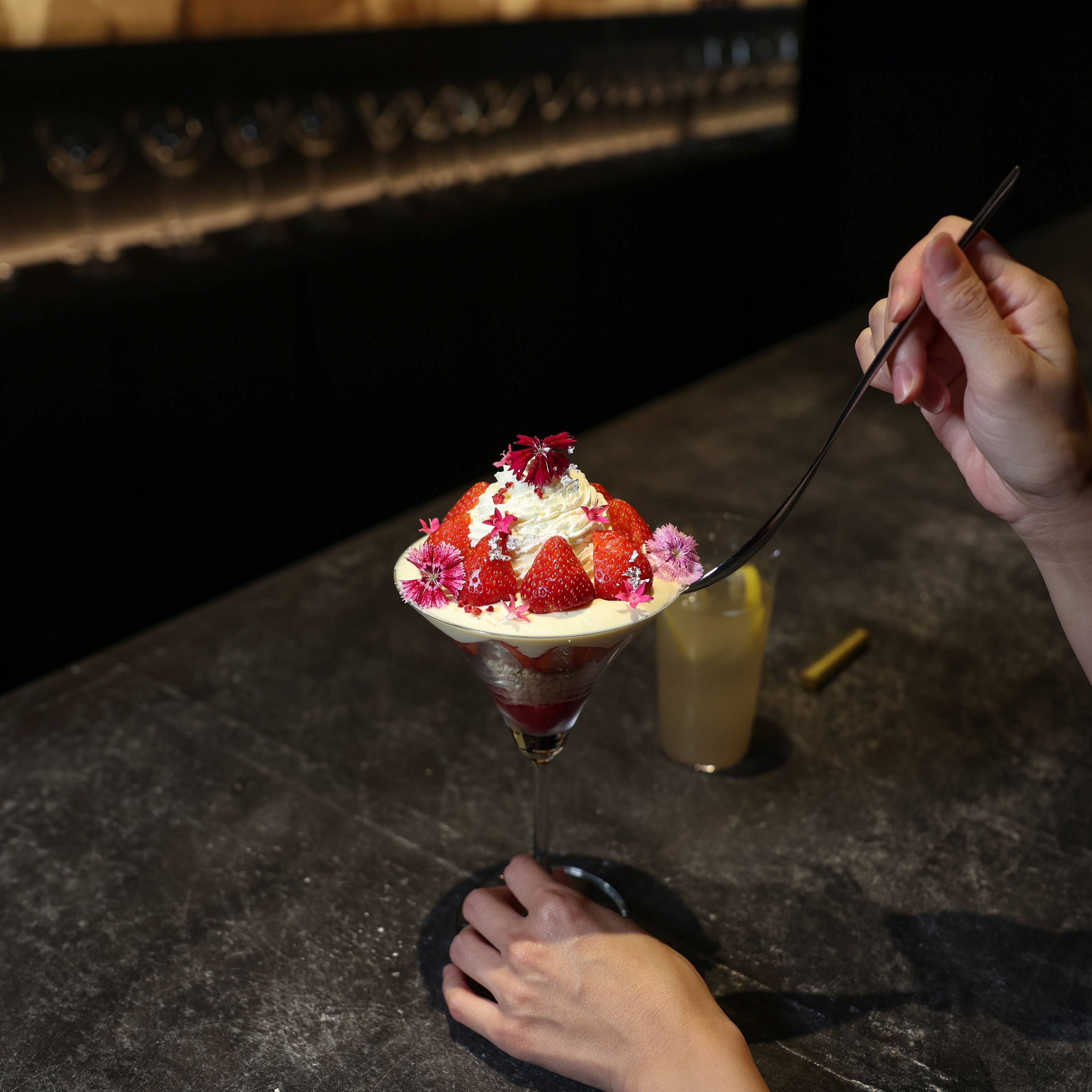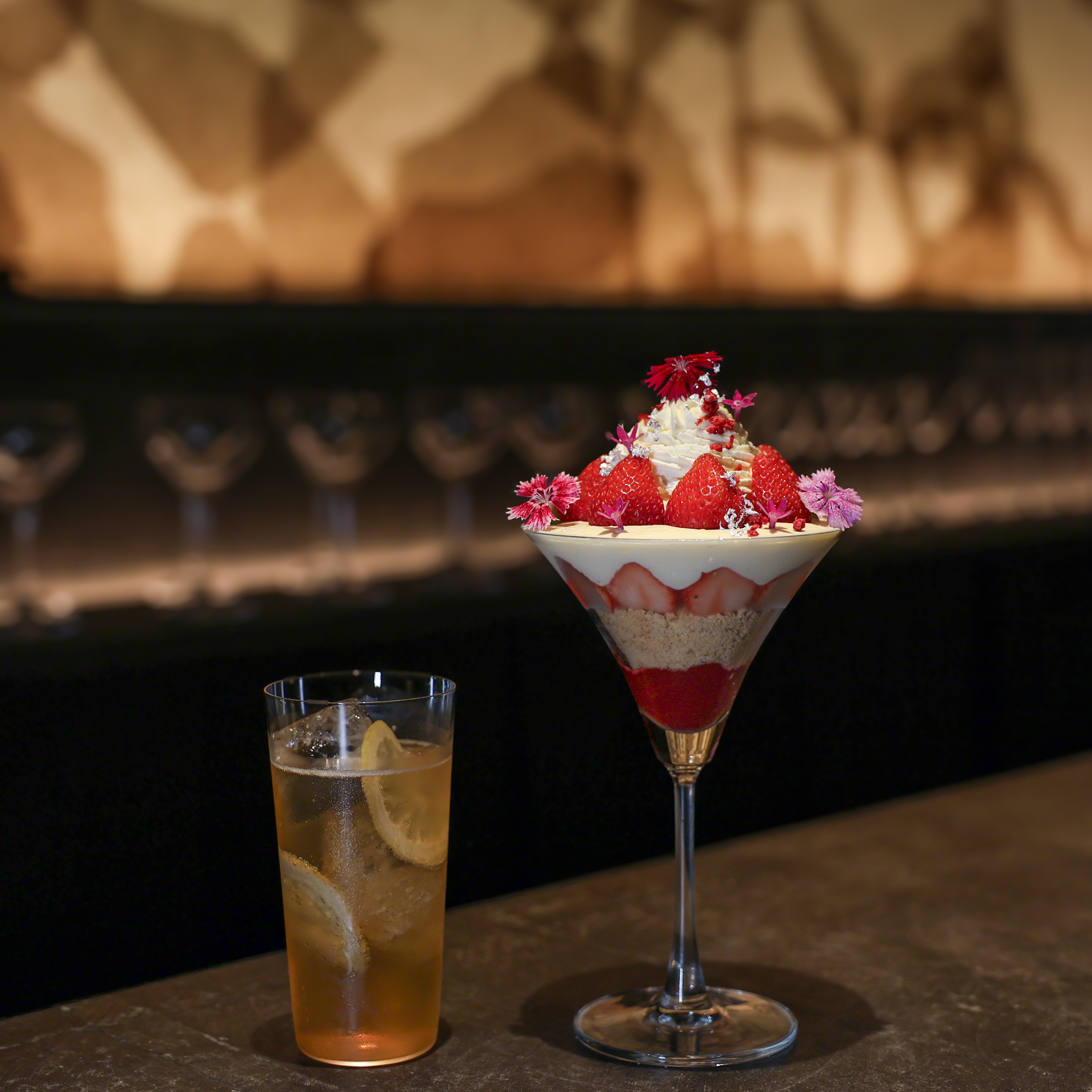 おいしさを最大限に引き出すために綿密に計算されたパフェとそれに合わせたペアリングカクテル。